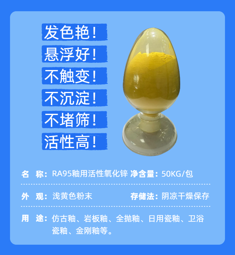 當(dāng)前位置:首頁 >產(chǎn)品中心>RA95型釉用活性氧化鋅 第三代