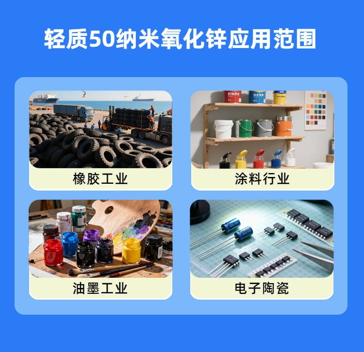 本產(chǎn)品是由肇慶市新潤豐高新材料有限公司采用低溫可控化學(xué)沉淀法制備的高純度納米氧化鋅。其平均一次粒徑嚴格控制在50納米左右,具備典型的六方纖鋅礦晶體結(jié)構(gòu)、較高比表面積及良好的分散性能。產(chǎn)品為白色疏松粉末,廣泛應(yīng)用于橡膠、涂料、電子、陶瓷等領(lǐng)域,作為高性能功能性添加劑,可顯著提升終端產(chǎn)品的力學(xué)性能、抗菌性、紫外屏蔽性和電學(xué)特性。